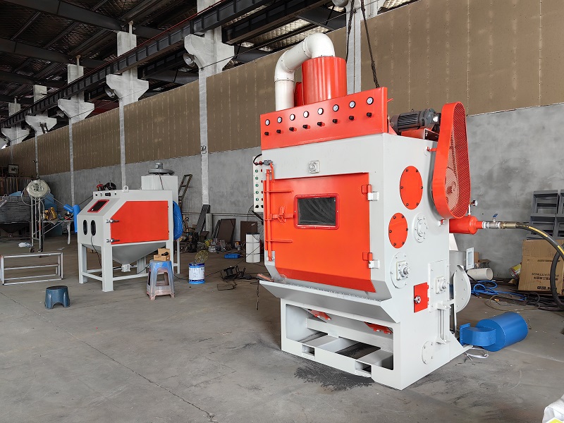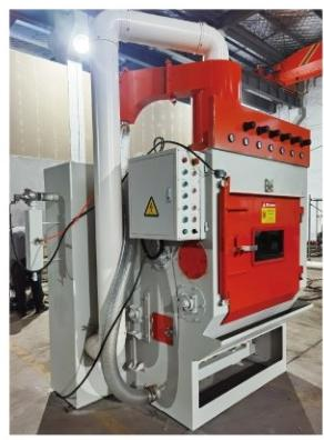 1、本機(jī)采用履帶帶動(dòng)工件翻轉(zhuǎn)滾動(dòng)噴砂方式。
